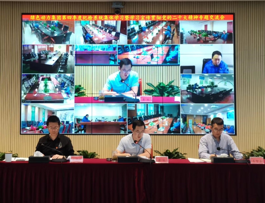 11月29日,綠色動力集團召開第四季度集團紀(jì)檢系統(tǒng)集體學(xué)習(xí)暨學(xué)習(xí)宣傳貫徹黨的二十大精神專題交流會。集團紀(jì)委委員、紀(jì)檢工作部、各項目公司黨支部書記、紀(jì)檢委員(紀(jì)律監(jiān)督員)和項目公司負責(zé)人共計83人以現(xiàn)場和視頻會議的方式參會。集團紀(jì)委書記黃琪出席會議并宣講,集團紀(jì)檢工作部部長陳運鵬主持會議。