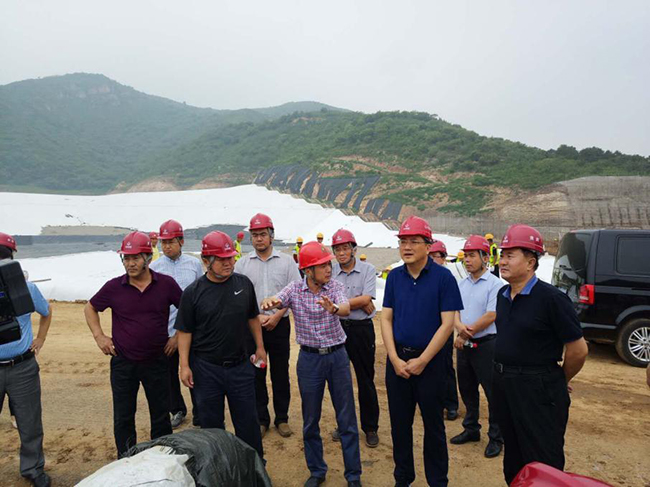 在密云項目公司副總經(jīng)理谷長海的陪同下,潘區(qū)長一行參觀了焚燒廠主廠房、污水廠、餐廚糞便處理車間、填埋場等施工區(qū)域。期間,潘區(qū)長重點視察了生活垃圾填埋場的施工情況,并要求公司要加快填埋場的建設(shè)進度,做好隨時接收垃圾的準備。在詳細了解了各分項工程的具體情況后,潘區(qū)長對密云項目的整體建設(shè)工作給予了肯定,他要求,密云市政市容委、項目公司和各參建單位要通力合作,在保證安全的前提下,加快工程進度,爭取早日投產(chǎn),為密云區(qū)的垃圾無害化處理貢獻力量。