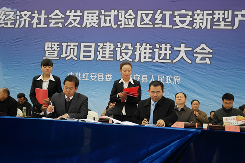 ??????? 12月17日上午,大別山革命老區(qū)經(jīng)濟(jì)社會(huì)發(fā)展試驗(yàn)區(qū)紅安新型產(chǎn)業(yè)園重大項(xiàng)目簽約暨項(xiàng)目建設(shè)推進(jìn)大會(huì)在湖北省紅安縣隆重舉行。會(huì)上,集團(tuán)總裁喬德衛(wèi)和紅安縣縣長(zhǎng)田盛輝分別代表合作雙方簽署了《湖北省紅安縣生活垃圾焚燒發(fā)電項(xiàng)目特許經(jīng)營(yíng)合同》。紅安項(xiàng)目是綠色動(dòng)力集團(tuán)2013年成功簽約的第三個(gè)垃圾焚燒發(fā)電項(xiàng)目,該項(xiàng)目擬選址于湖北省紅安縣。