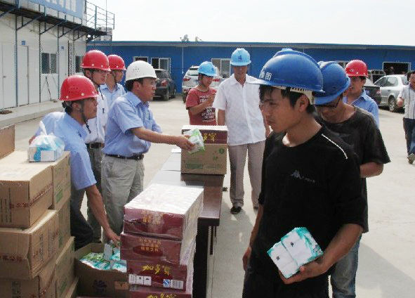 ?????集團此次“送清涼活動”進(jìn)一步體現(xiàn)了 “以人為本”的管理理念,各參建單位和一線工人紛紛感謝集團的親切關(guān)懷,表示將以更加飽滿的熱情和干勁投入到項目的施工建設(shè)和生產(chǎn)運行當(dāng)中,高標(biāo)準(zhǔn)、高質(zhì)量、高效率地完成各項工作任務(wù)。