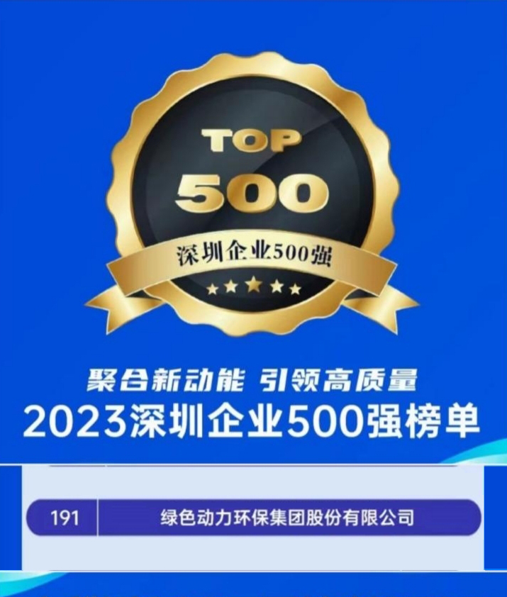 9月25日,深圳市企業(yè)聯(lián)合會(huì)、深圳市企業(yè)家協(xié)會(huì)正式發(fā)布“2023深圳企業(yè)500強(qiáng)榜單”及《2023深圳500強(qiáng)企業(yè)發(fā)展報(bào)告》。綠色動(dòng)力集團(tuán)憑借總體規(guī)模、經(jīng)營(yíng)效益、社會(huì)貢獻(xiàn)、創(chuàng)新能力等方面過(guò)硬的綜合實(shí)力位列第191名。
