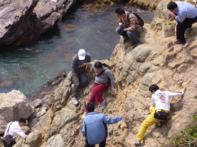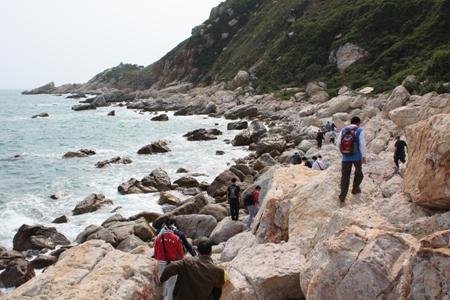 ????? 深圳東西沖海岸線是深圳最美麗、最經(jīng)典的海岸徒步線路,被《國家地理雜志》評為中國最美的十大徒步線路之一。此次活動我們選擇的路線是從東往西沿海岸線穿越,歷經(jīng)島嶼、礁石、海蝕巖、峭壁等不同海積海蝕地貌,大部分路段都不是能正常行走的道路,很多時候需要手腳并用才能前進(jìn),而且途中沒有任何交通工具可以借助。穿越過程中,大家結(jié)伴前行,充分發(fā)揚(yáng)團(tuán)隊(duì)協(xié)作精神,互幫互助,克服了恐懼、驕陽、饑餓、口渴、疲憊、抽筋甚至傷痛等困難,歷經(jīng)4個多小時終于到達(dá)目的地。